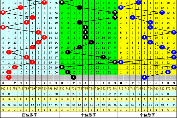5.下期奖号跨度分别开出:5、5、9、5、5、3、3、9、2、9,其中跨度012路比为5:0:5,大小比7:3,奇偶比为9:1,本期适当关注0路跨度开出,参考跨度3。